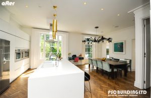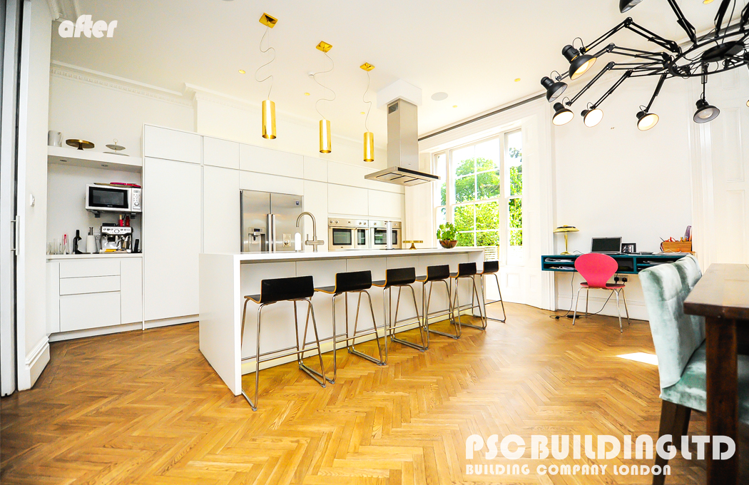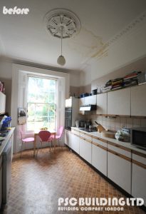 We are a high end builder based company in Bromley. At PSC Building LTD we offer full kitchen installations, removals and fitting. This includes plumbing, plastering, flooring, tiling and fitting. Below is a sample of our previous work at a property in Beckenham in the borough of Bromley. The two photos below show the room that was converted into a kitchen at the start of the project and the previous kitchen that existed to the right of it in the photos. The old kitchen is also shown in the photo on the right.